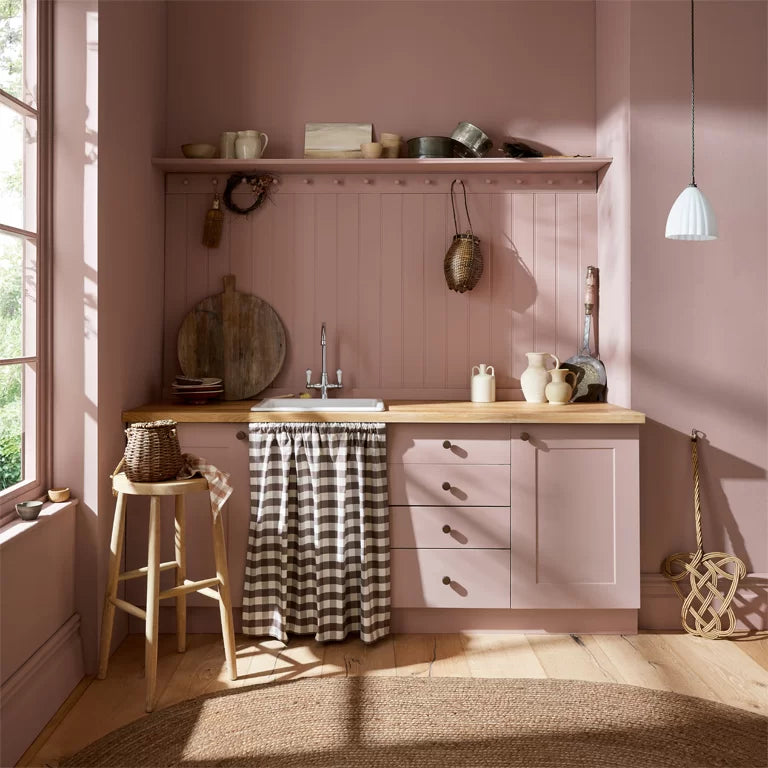 This vintage dusky pink has floral roots balanced with deep earthy tones that give it a timeless quality