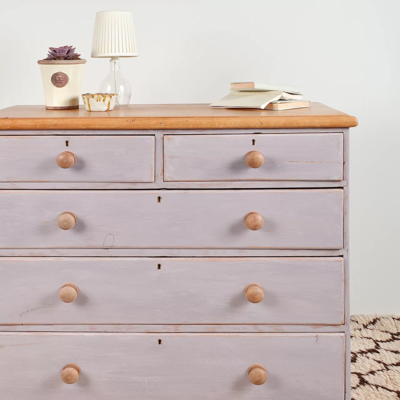 A sophisticated combination of taupe, grey and lilac. Works well used alongside natural finishes such as lime washed woodwork and even concrete